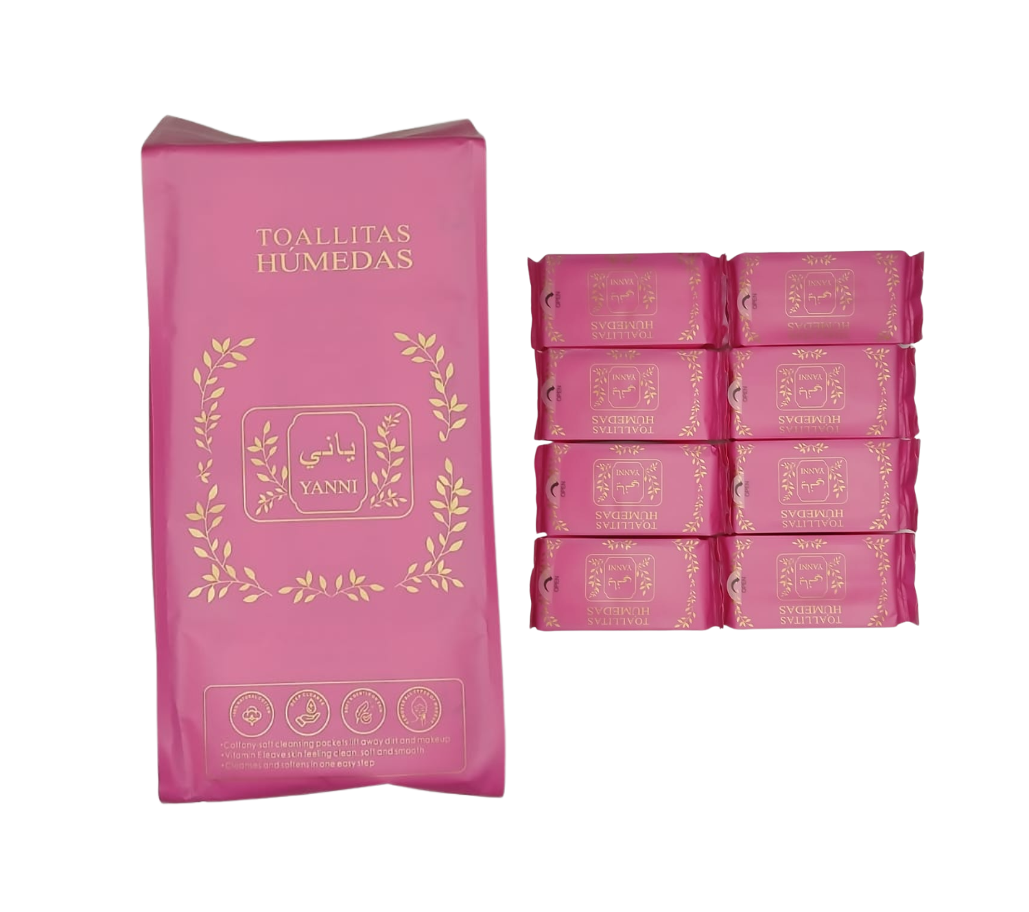 Incluye 8 mini paquetitos de toallitas desmaquillantes!